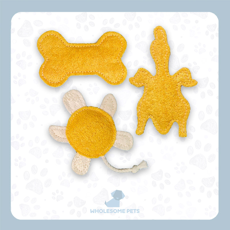 エコな植物繊維でできたフード型トイ。楽しく遊びながら、歯の健康をサポートします。