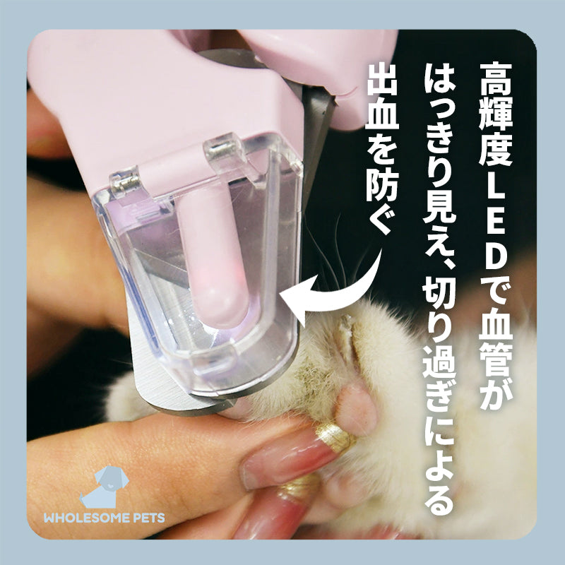 切ったツメが飛び散るのを防ぎ、視界もクリアに保ちます。