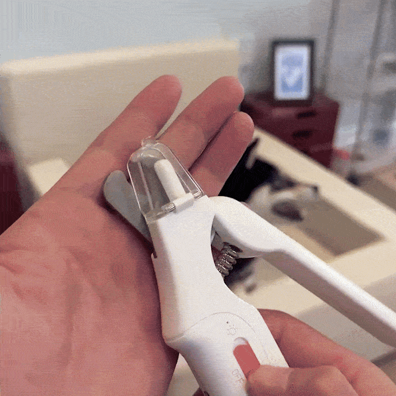 ライトがカット位置を照らしてくれるから、血管の手前でストップ。ネコパンチも減って手も安全。