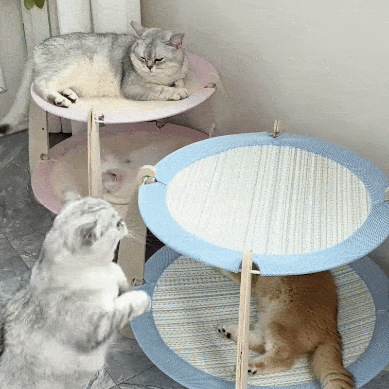 2段構造で場所取り問題を解消。上段は日向ぼっこ、下段は涼しい休憩所。昼寝時間が増えて、ソファの爪痕も減ります。