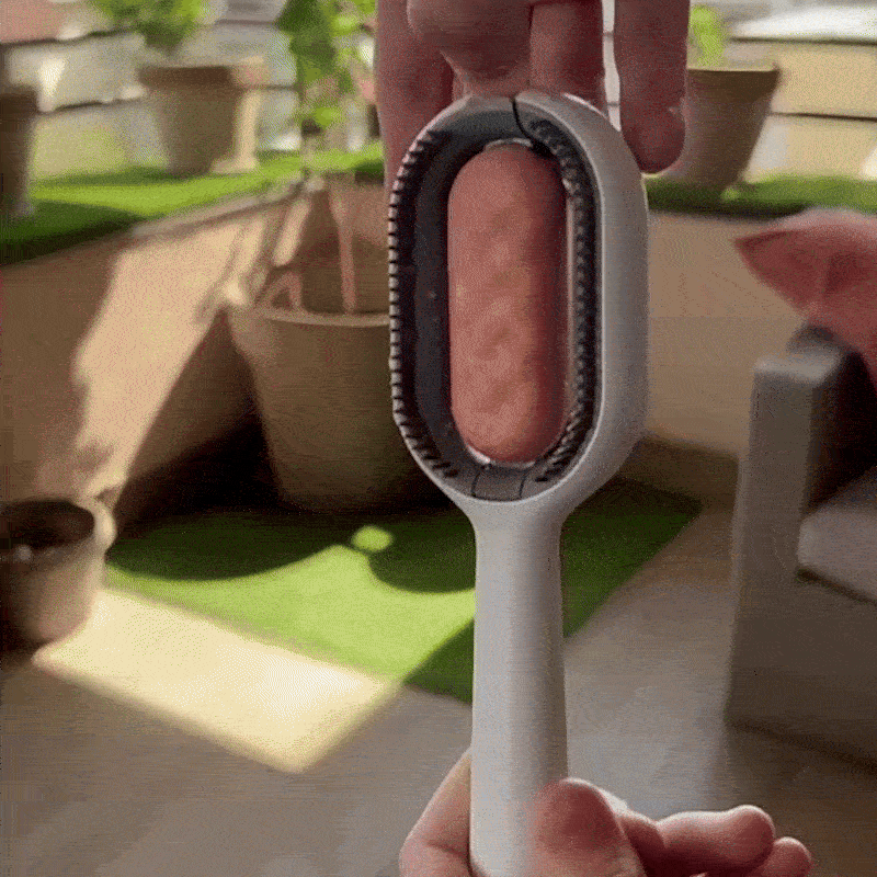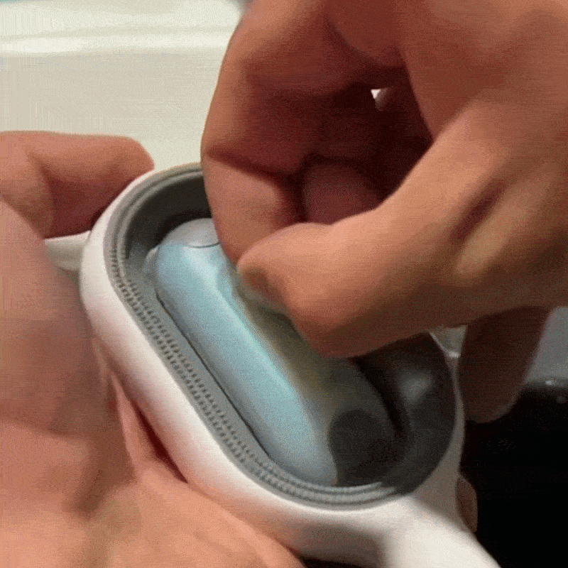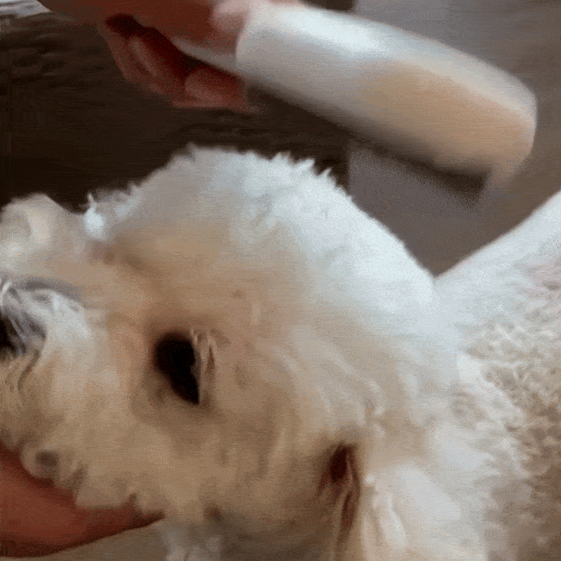 ブラッシング・洗浄・マッサージ・抜け毛取りがこれひとつで完結。背面は毛取りクリーナーとして衣類やソファにも使えます。