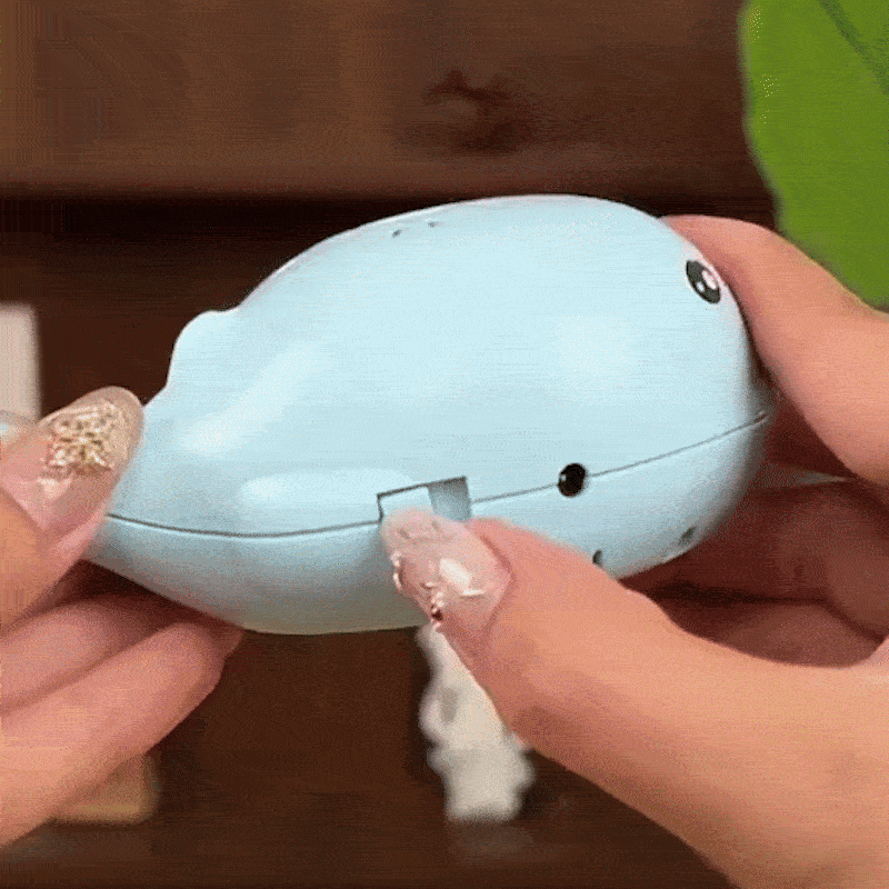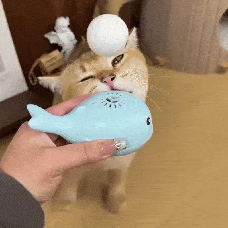 スイッチを入れるとクジラからやさしい風が出て、ボールがふわふわと浮き上がります。狩猟本能を刺激して猫が夢中に!